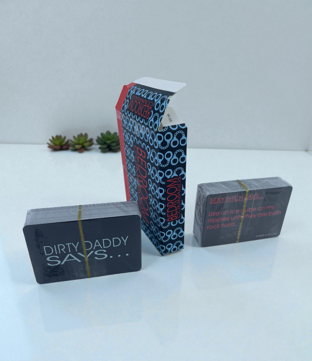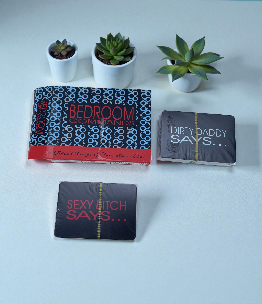 Unleash your inner desires and dominate the night with Bedroom Commands, the thrilling couples card game designed to ignite passion, explore fantasies, and establish an exhilarating new dynamic of control and submission. Divided into two provocative decks ‘Dirty Daddy Says…’ and ‘Sexy Bitch Says…’ this game hands you the power to command pleasure and receive exactly what you crave!