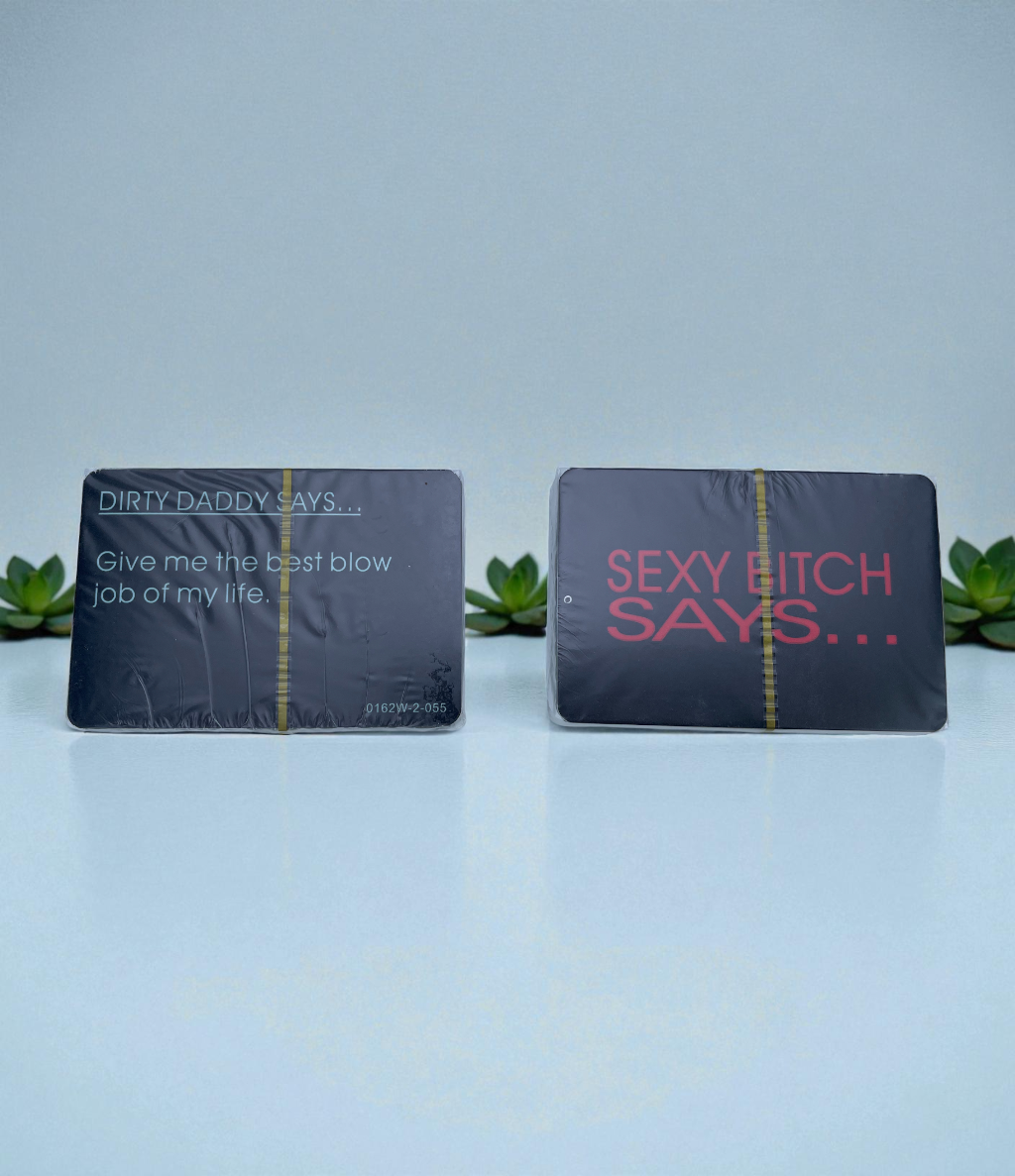 ✔ Dual-Deck Command System: Includes two separate decks: ‘Dirty Daddy Says…’ (for him to command) and ‘Sexy Bitch Says…’ (for her to command), establishing a fun power exchange game and dominant/submissive play.